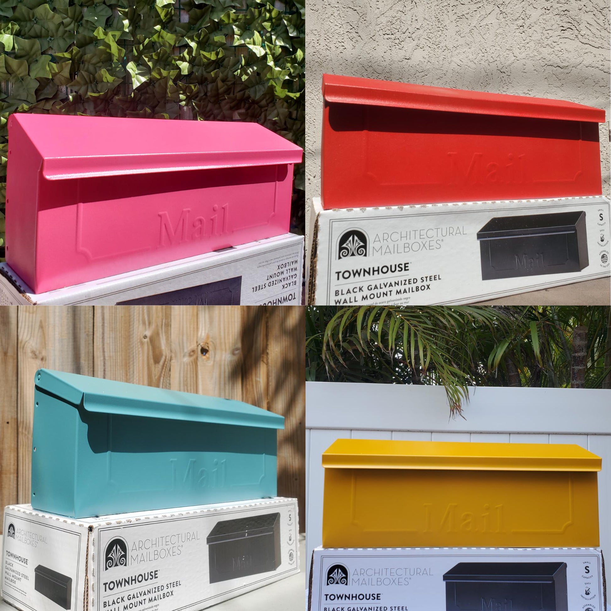 These are small size townhome style metal mailboxes that I purchase and paint. I use only high quality spray paints and a high gloss UV protectant spray. The durable, protective coating provides for a long lasting finish and excellent resistance to fading, chipping and abrasion.