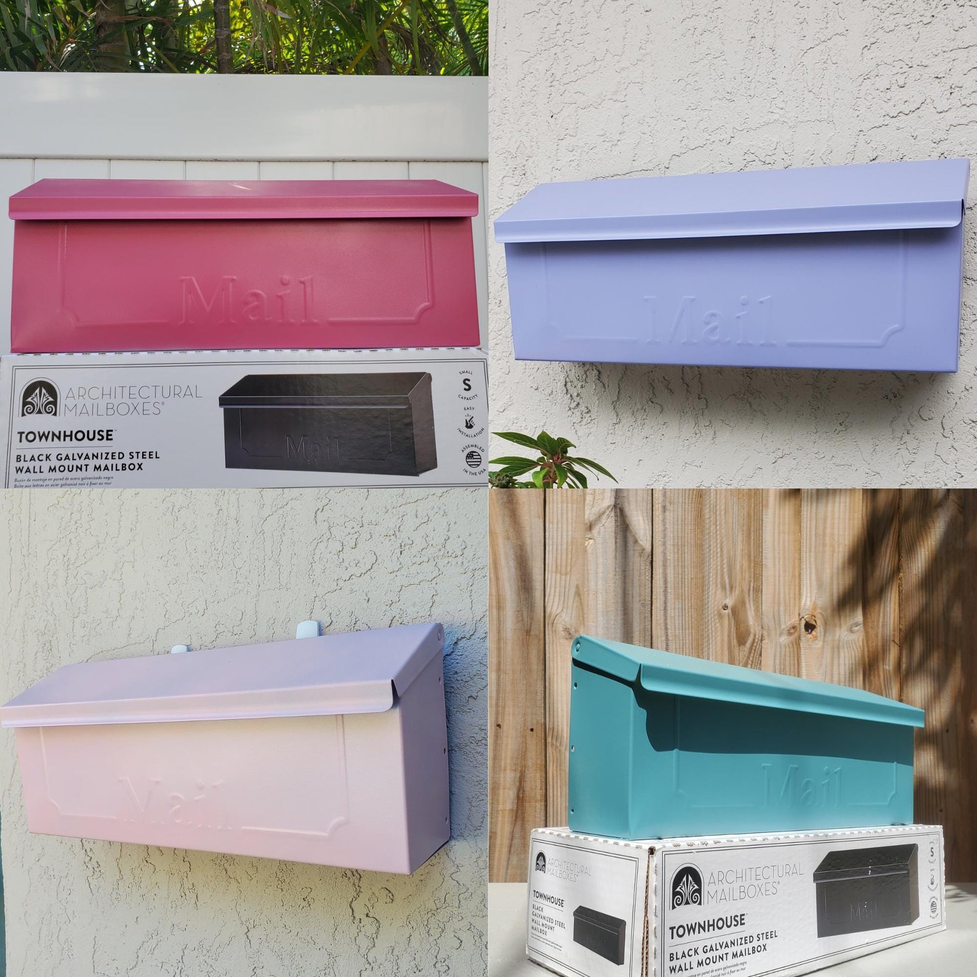 These are small size townhome style metal mailboxes that I purchase and paint. I use only high quality spray paints and a high gloss UV protectant spray. The durable, protective coating provides for a long lasting finish and excellent resistance to fading, chipping and abrasion.