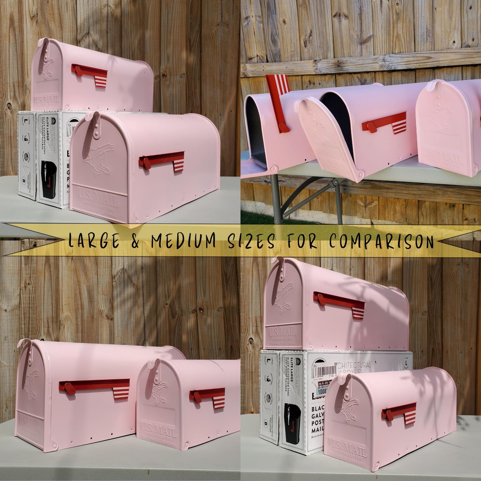 These are metal post mount mailboxes that I purchase and paint. All are painted with high quality spray paints and a high gloss UV protectant spray, maintaining its vibrant hue and stylish appearance over time. The durable, protective coating provides for a long lasting finish and excellent resistance to fading, chipping and abrasion.