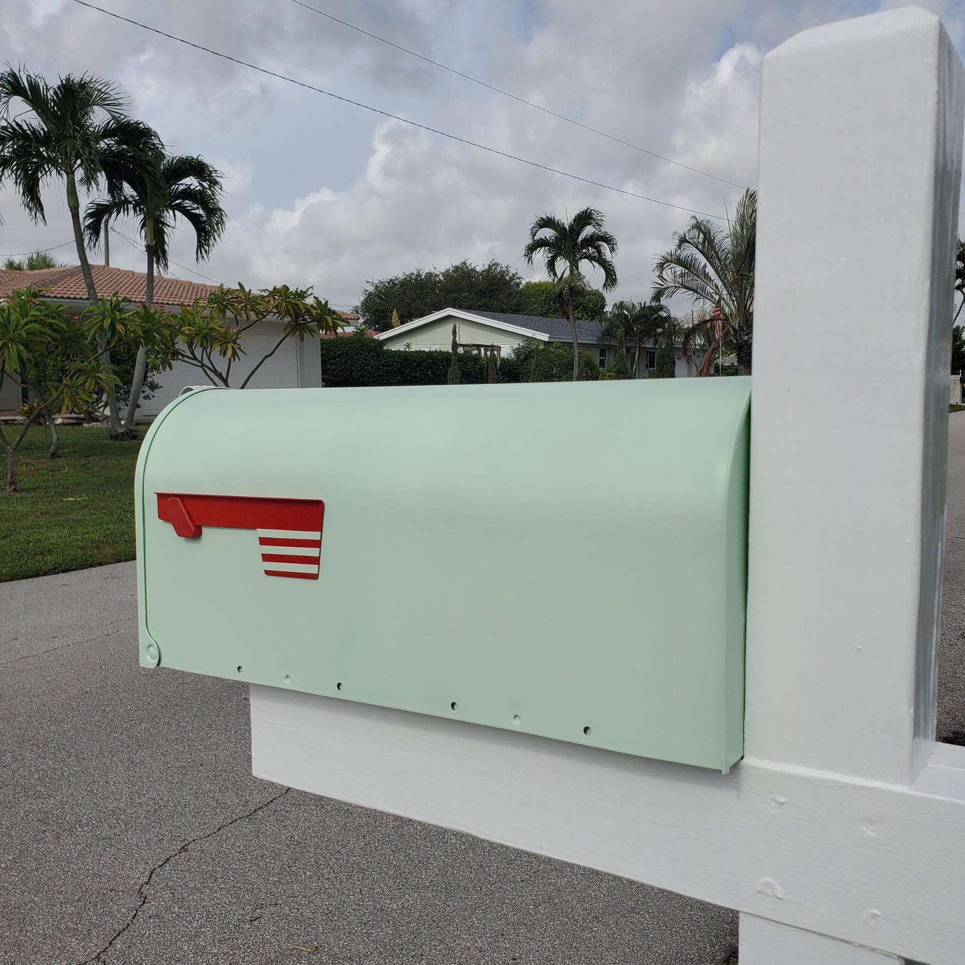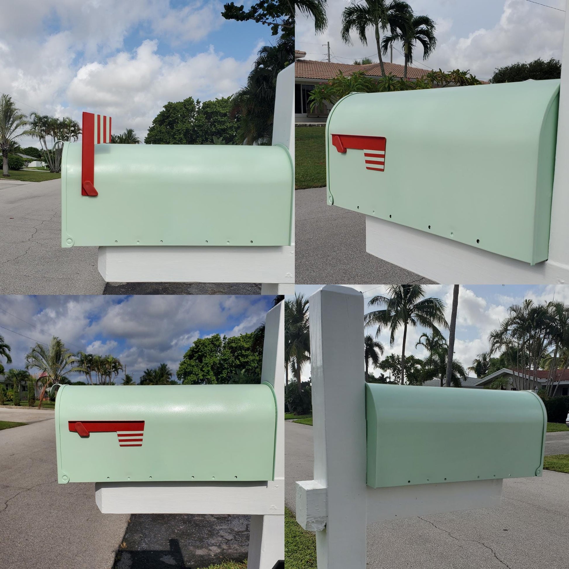These are metal post mount mailboxes that I purchase and paint. All are painted with high quality spray paints and a high gloss UV protectant spray, maintaining its vibrant hue and stylish appearance over time. The durable, protective coating provides for a long lasting finish and excellent resistance to fading, chipping and abrasion.