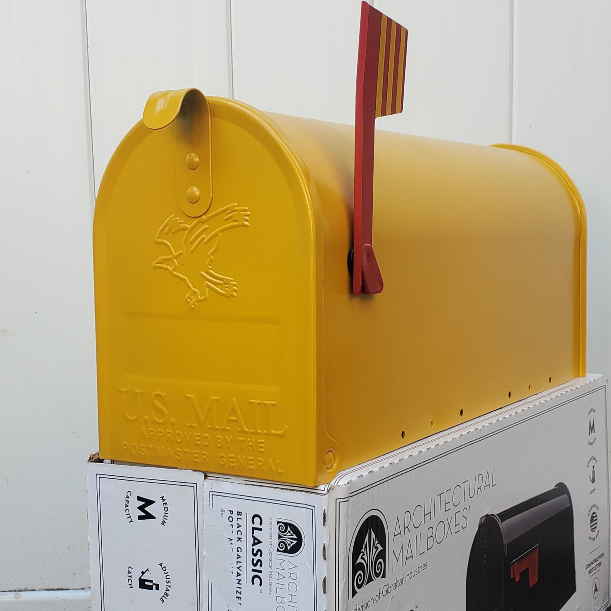 Brighten up any home’s exterior with our Marigold Yellow Mailbox, custom painted for a bold and cheerful look! Designed for durability, this post mount mailbox features a UV & rust-resistant finish, ensuring long-lasting beauty in any weather.