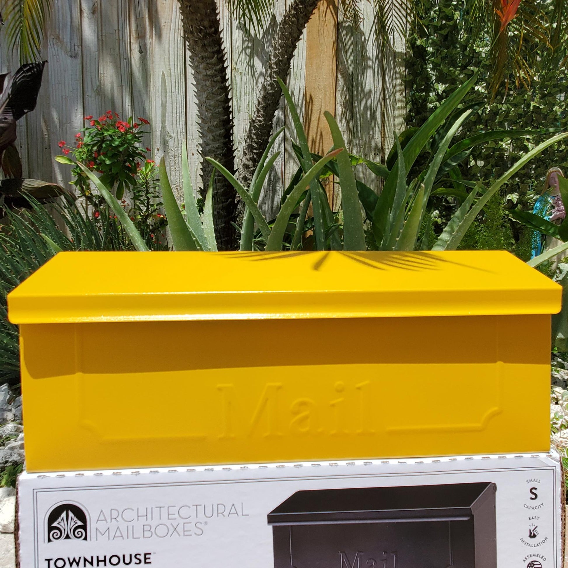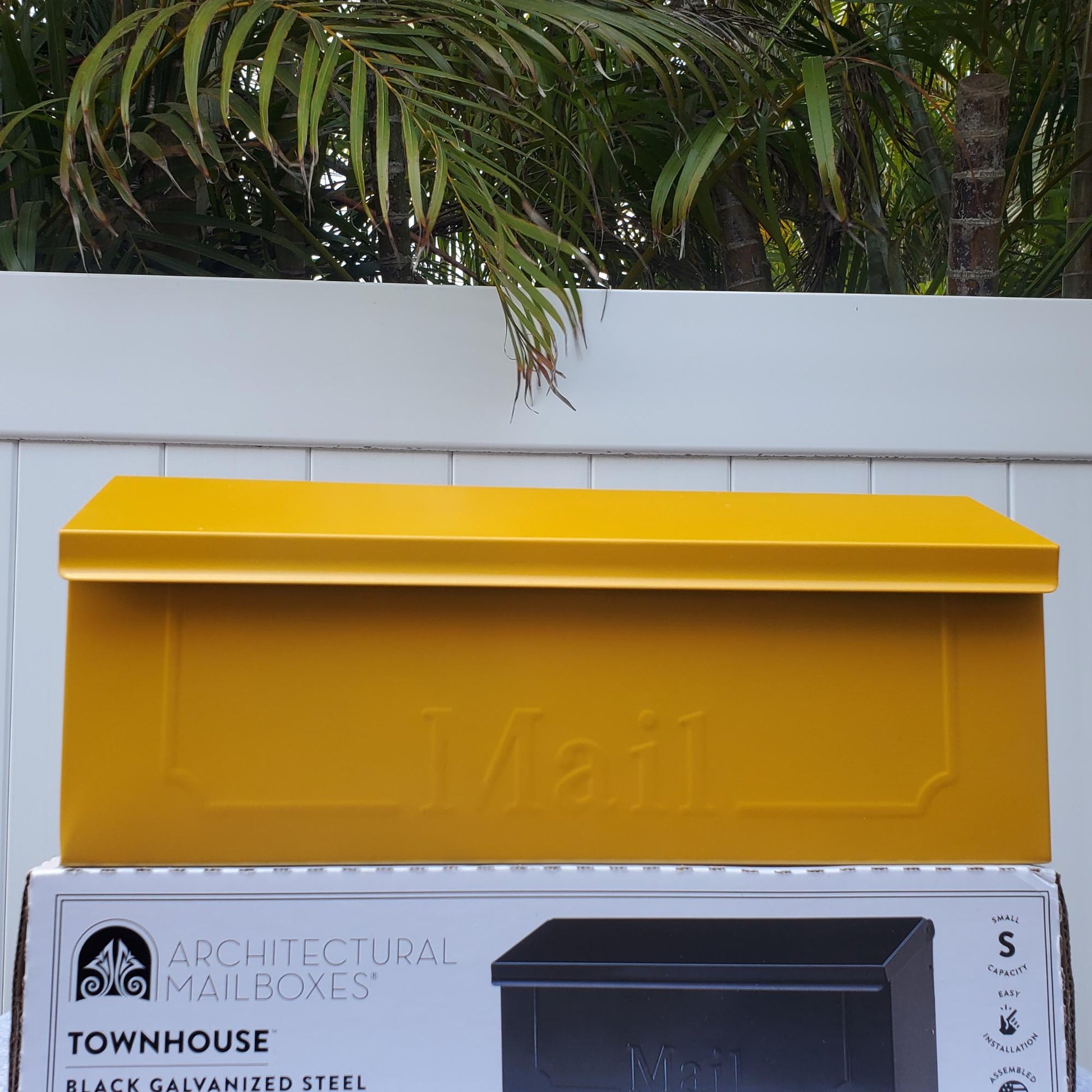 Add an inviting touch to any front door with this Marigold Yellow Wall Mount Mailbox. Whether you're gifting it to a new homeowner, hanging it outside your office, or even gifting it to Mom for a thoughtful and practical surprise—this mailbox makes a truly special gift. Painted in a warm marigold yellow.