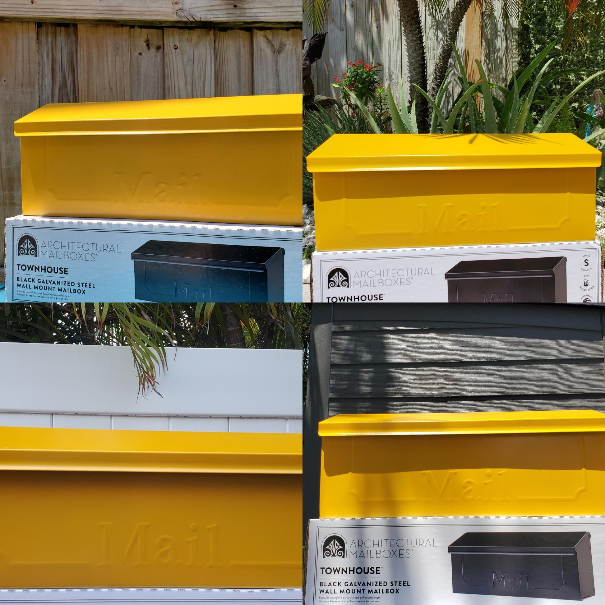 These are small size townhome style metal mailboxes that I purchase and paint. I use only high quality spray paints and a high gloss UV protectant spray. The durable, protective coating provides for a long lasting finish and excellent resistance to fading, chipping and abrasion.
