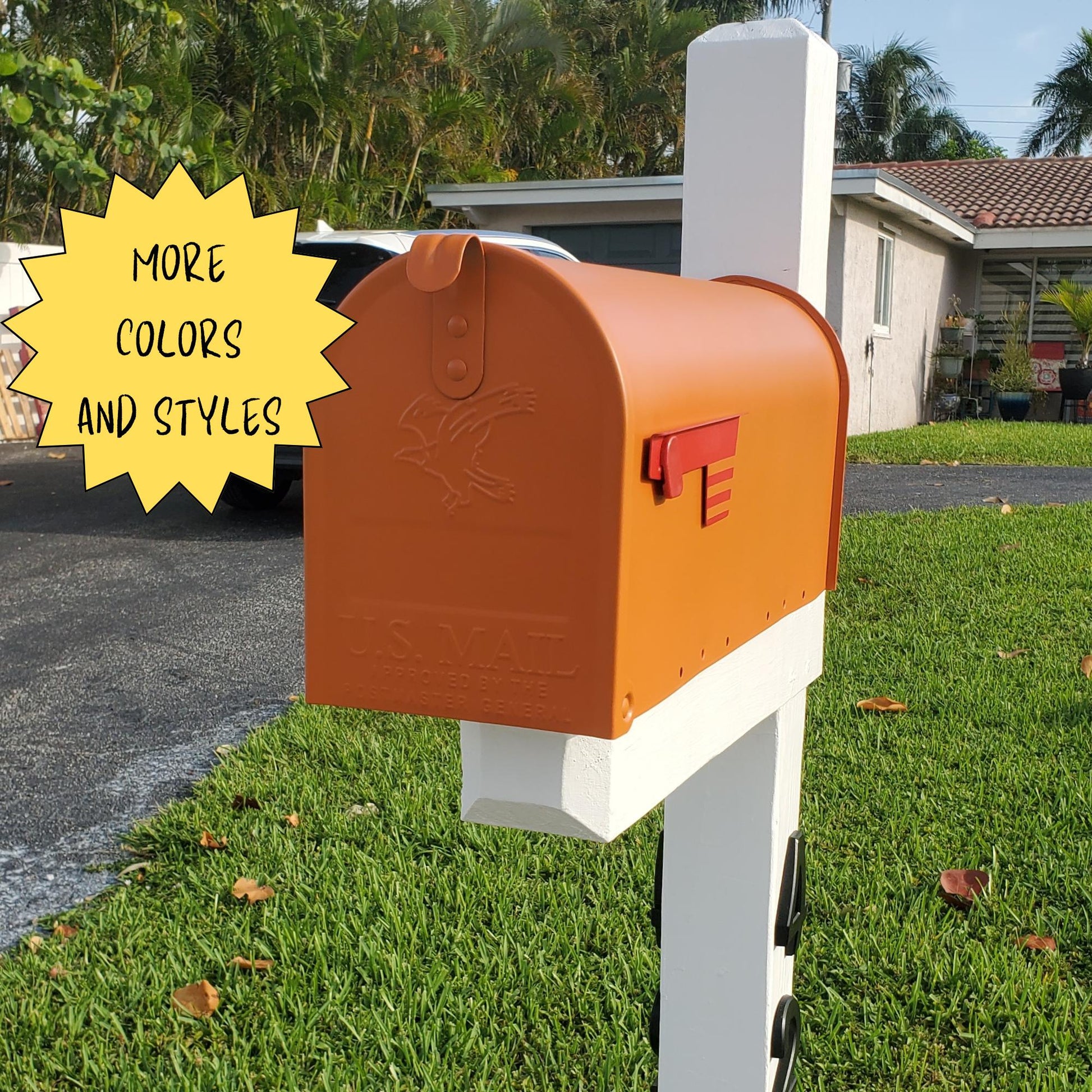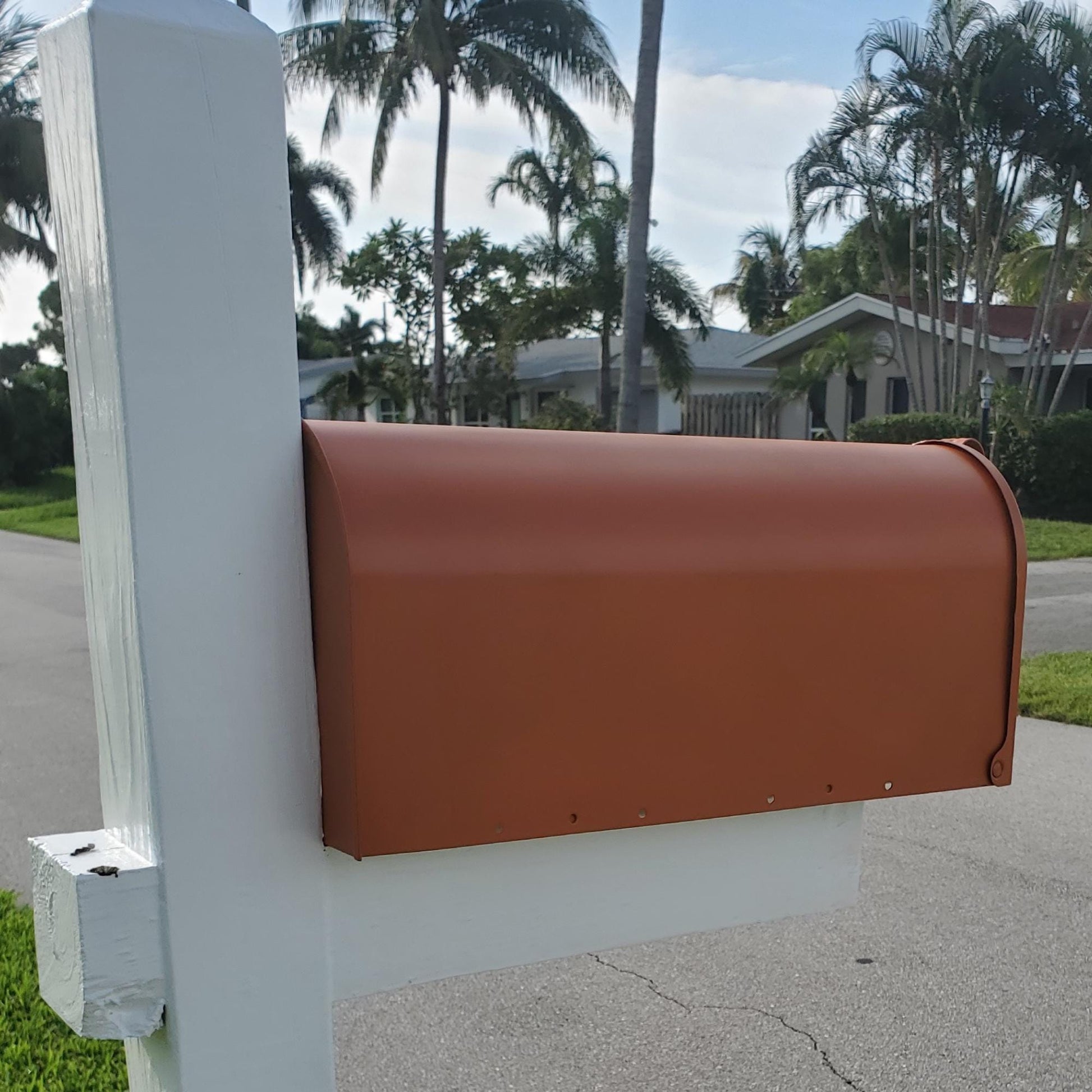 These are metal post mount mailboxes that I purchase and paint. All are painted with high quality spray paints and a high gloss UV protectant spray, maintaining its vibrant hue and stylish appearance over time. The durable, protective coating provides for a long lasting finish and excellent resistance to fading, chipping and abrasion.