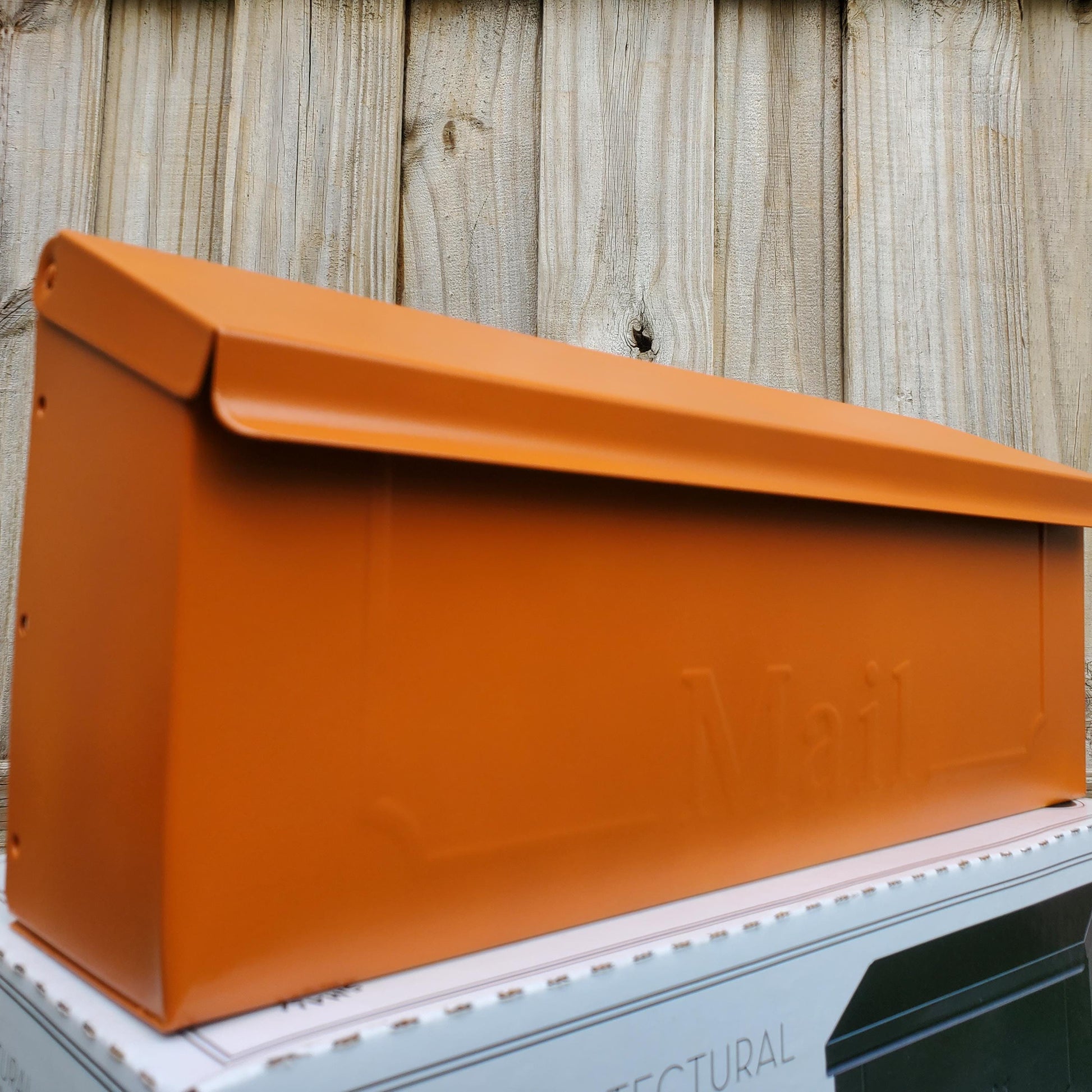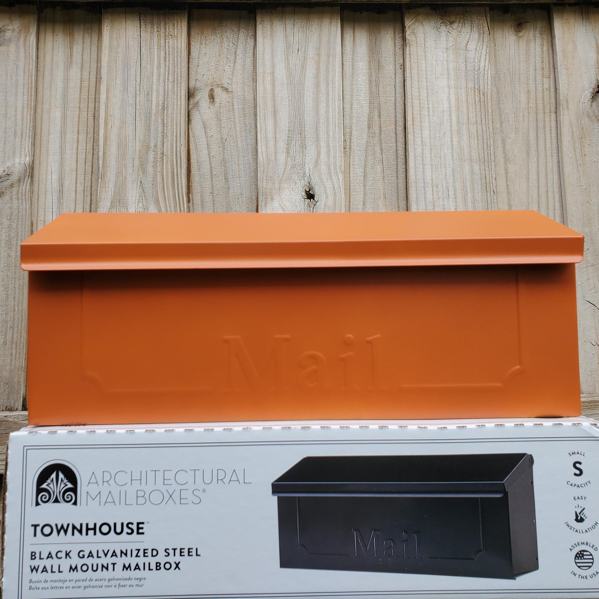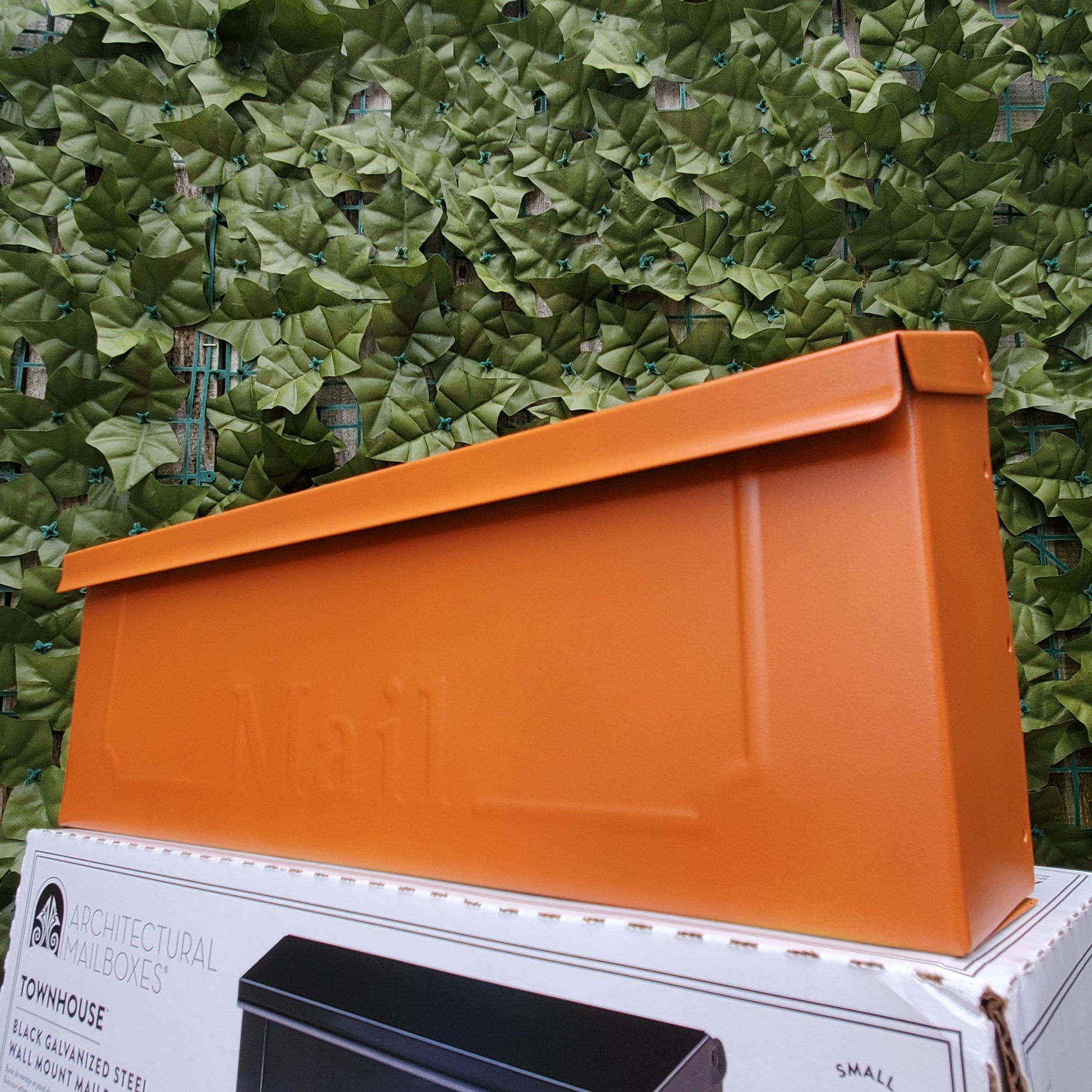 Brighten up your entryway with this cheerful and rustic orange wall mounted mailbox. This hand painted mailbox is both functional and stylish, ideal for smaller spaces where front door flair makes all the difference. It's perfect for townhouses, condos, and offices that deserve a touch of custom charm.