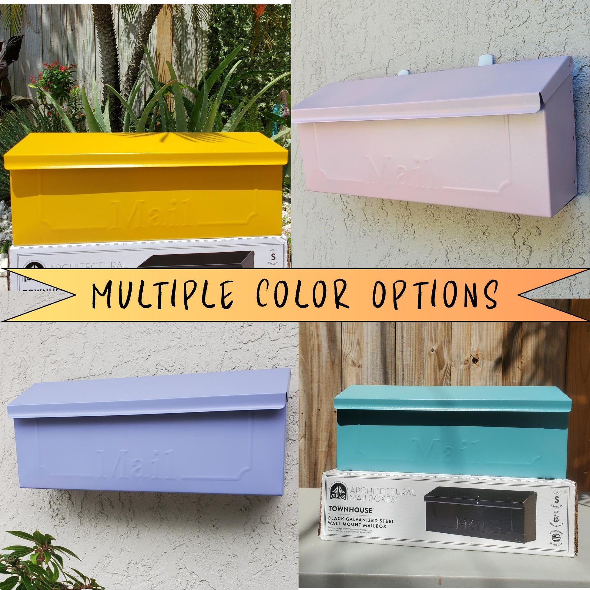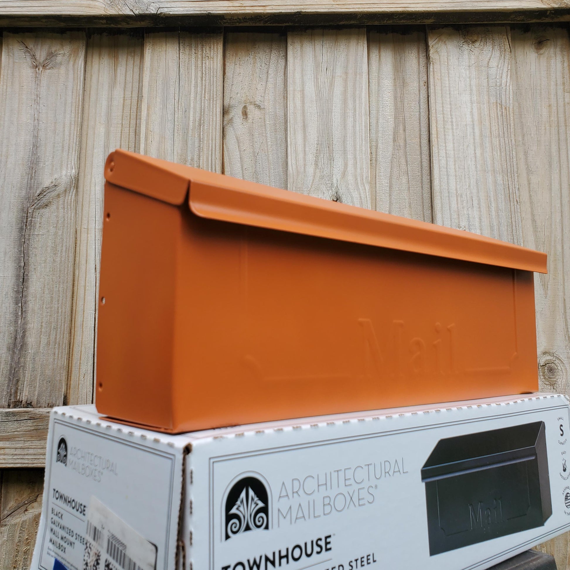 These are small size townhome style metal mailboxes that I purchase and paint. I use only high quality spray paints and a high gloss UV protectant spray. The durable, protective coating provides for a long lasting finish and excellent resistance to fading, chipping and abrasion.