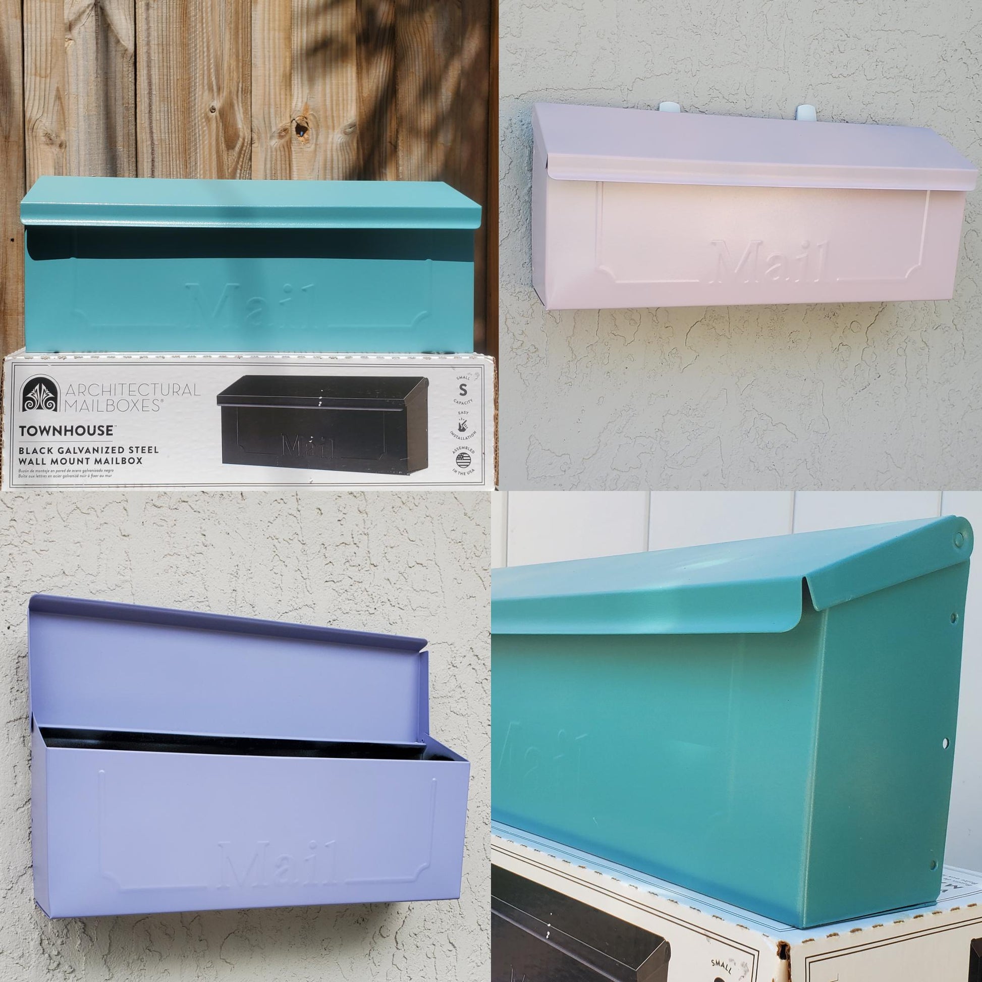 These are metal wall mount mailboxes that I purchase and paint. All are painted with high quality spray paints and a high gloss UV protectant spray, maintaining its vibrant hue and stylish appearance over time. The durable, protective coating provides for a long lasting finish and excellent resistance to fading, chipping and abrasion.
