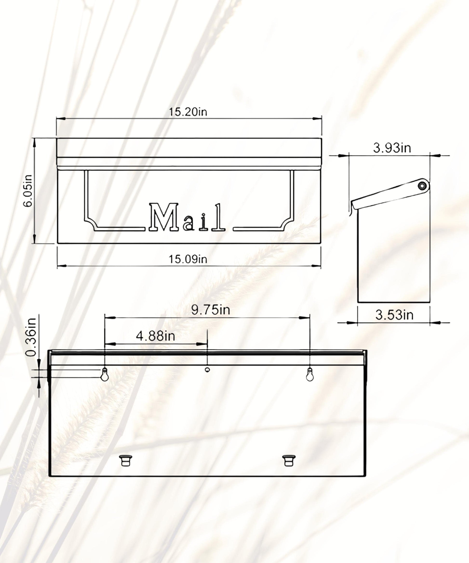 Its classic shape is enhanced by an embossed border and the word 'Mail.' The incoming mail opening is the full length and width of the mailbox and offers ample space for envelopes, rolled magazines and small padded envelopes. It's an ideal housewarming or closing gift that blends charm with practicality. Crafted with longevity in mind, this mailbox resists weathering, ensuring it remains a striking feature for years.